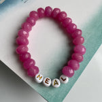 The bracelets you see in these photos all have a different words beaded on them, but feel free to choose any word that you like to make it more personal.
