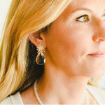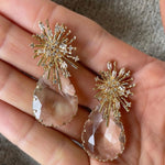 Our all-time MOST popular "going-out" earrings for weddings, evening events, parties and nights out. Add a touch of glitz to any stye ... casual, preppy, classic, edgy or boho. The clear faceted quartz absorbs the color of your outfit to give a little pop of color, accented with bursts of gold champagne specks.