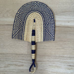 17” by 11” / These fans are called Bolga Fans and are made in Bolgatanga, a small town in the northern region of Ghana. The fans are purely hand woven and made from straw called “Elephant Grass”. with the designs taking inspiration from the fans once made for Ghanaian royalty. Inspired by the regal fans once used by Ghanaian queens, these striking pieces unite West African heritage with modern design. Each fan undergoes a meticulous 8-step process that takes up to a day to complete.
