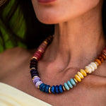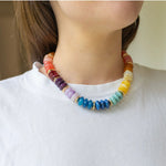 Add a splash of color to your wardrobe with this eye-catching acrylic necklace! Featuring a vibrant array of bright hues and elegant gold accents, this piece combines playful charm with a touch of sophistication. The lightweight acrylic ensures comfort for all-day wear, while mimicking the elegance of a gemstone, making it a standout accessory for any event or season.
