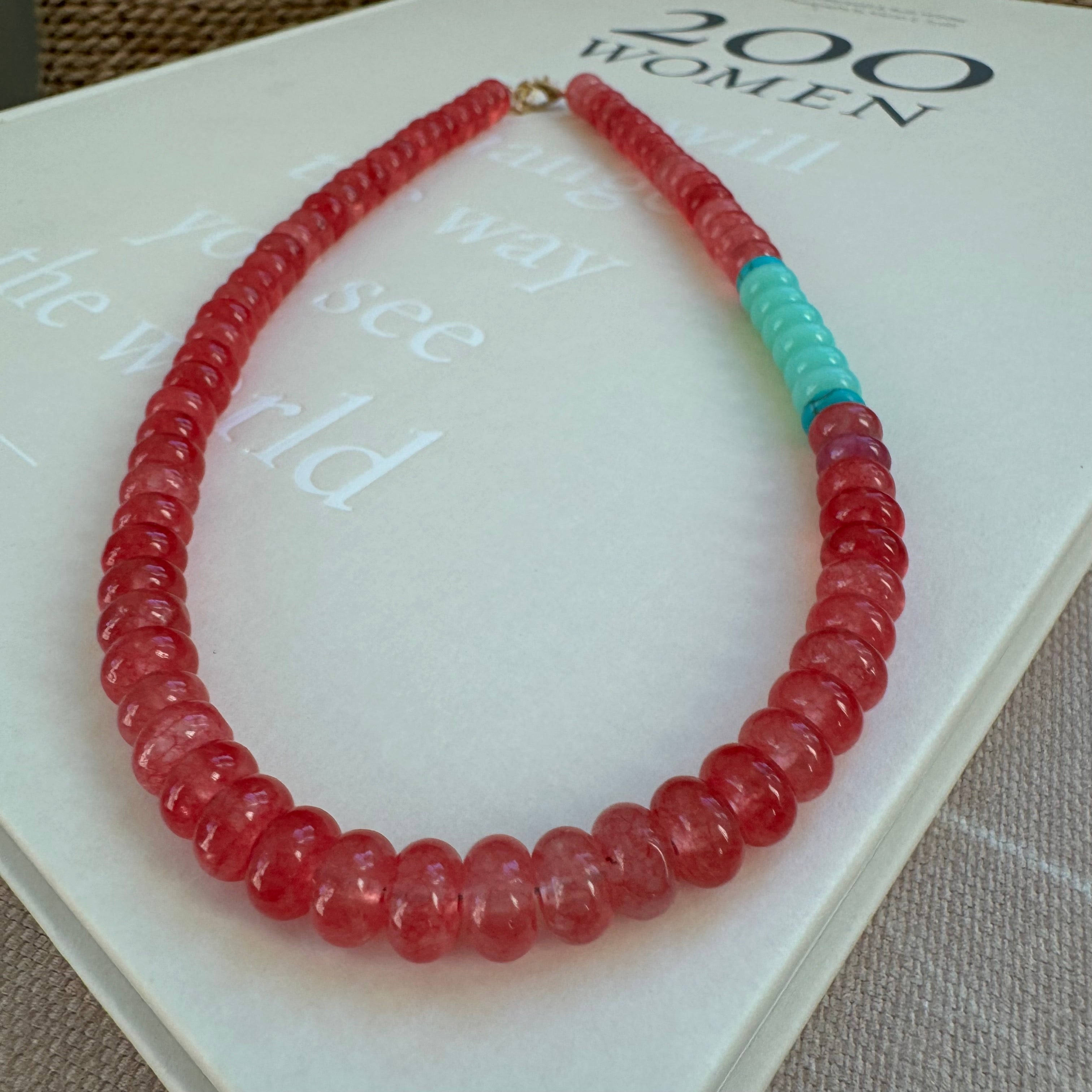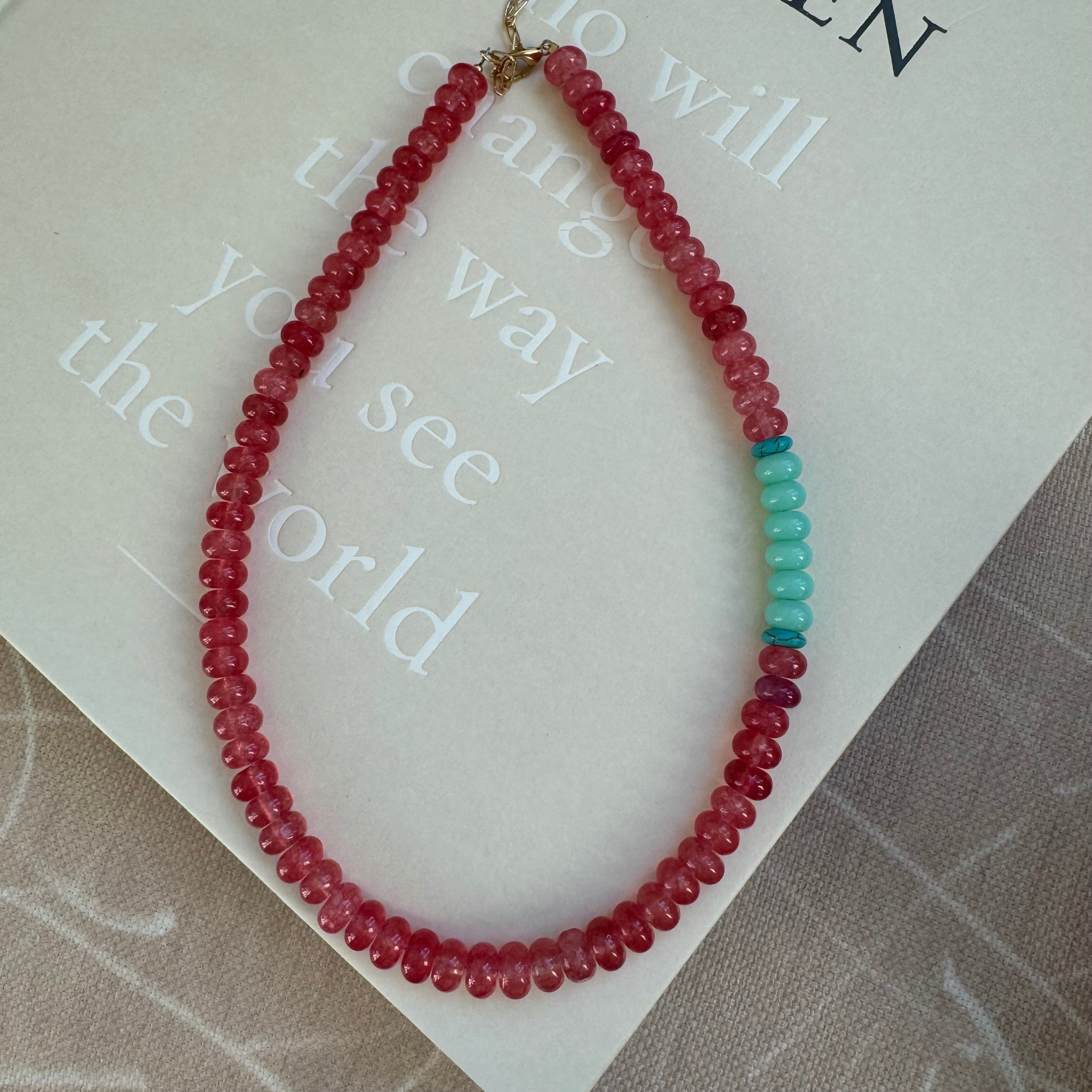 We adore this Spicy Sangria Gemstone Necklace with mint stones and strawberry stones. It's the perfect pop of color for your everyday outfits. Try it layered with the Full Heart Necklace to complete your look.