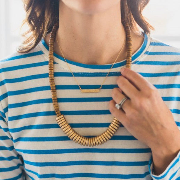 Coconut wood and Gold Bar Necklace