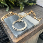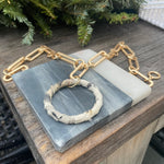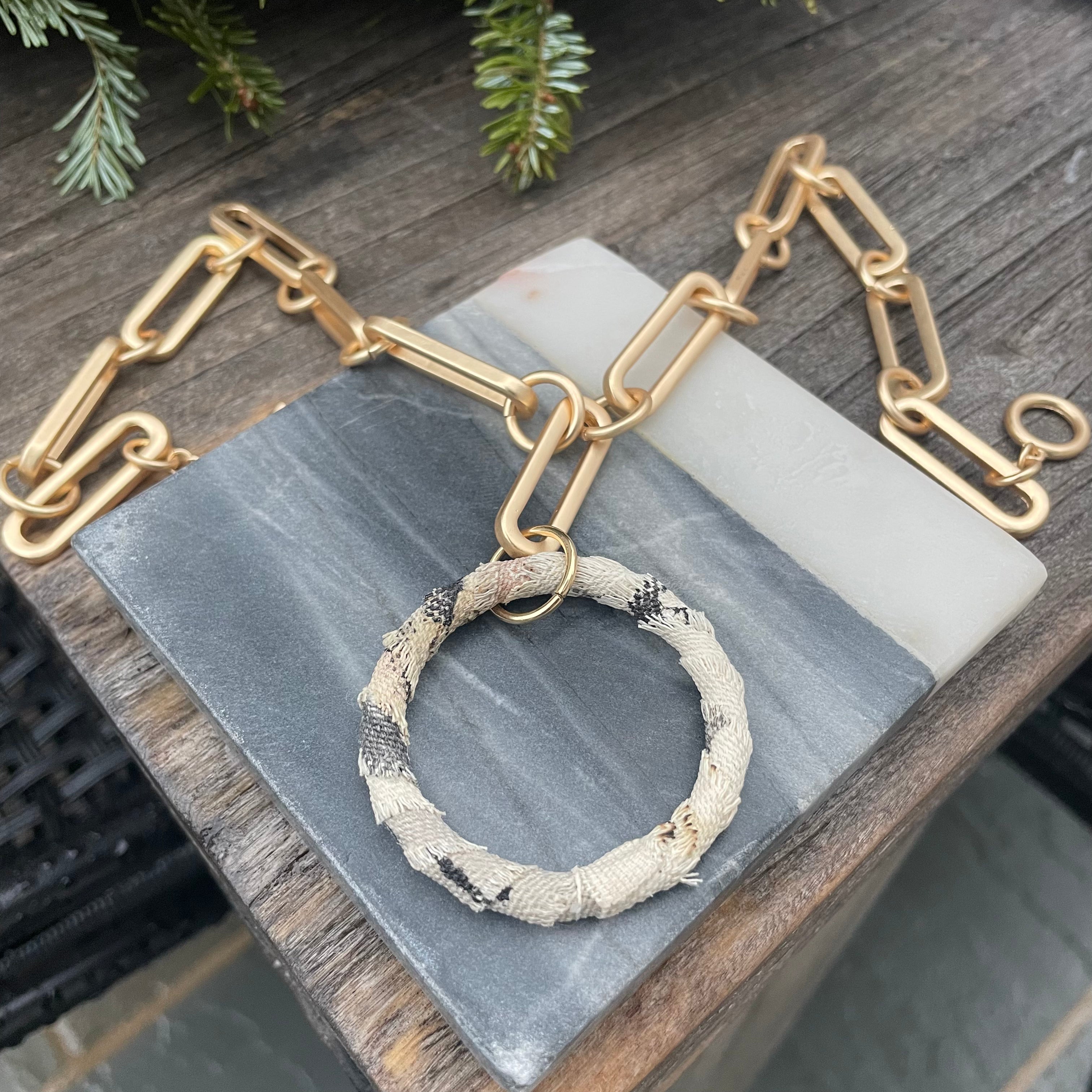 Signature 18” matte gold rectangle chain with Kiki slaughter canvas wrapped. One of a kind.