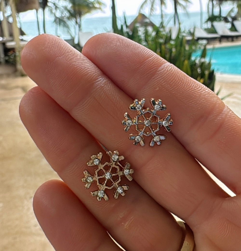 These delicate snowflake studs sparkle with tiny crystal details that catch the light from every angle. Lightweight, festive, and easy to wear, they add the perfect touch of winter magic to any look—whether you’re bundled up at home or heading out for holiday fun.
