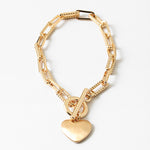 A timeless blend of elegance and meaning, the Golden Promise Bracelet features a textured link chain and a sleek toggle closure that frames a softly brushed heart charm. Lightweight yet luxurious, it’s the perfect everyday piece to symbolize love, connection, and all the little promises we keep. Wear it solo for a delicate golden statement or stack it with your favorite bracelets for a chic, layered look.