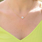 A delicate druzy is encased in gold and hangs softly in the middle of a lightweight gold chain. A great neutral piece that adds a little bit of loveliness to your day!