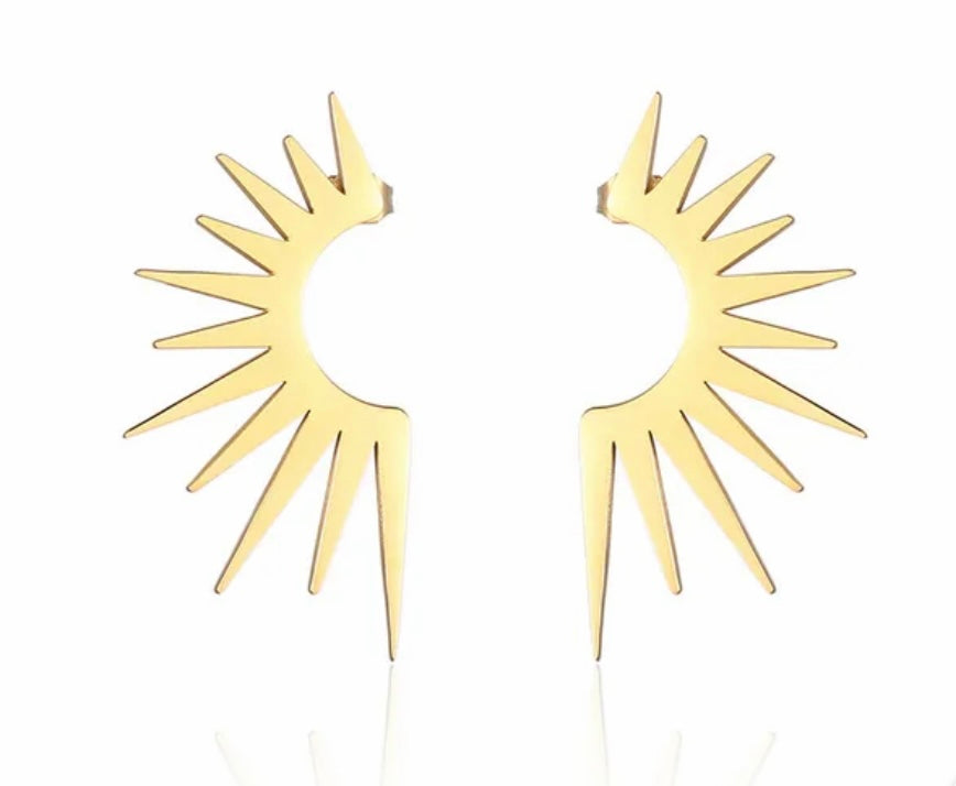 Striking sunburst silhouettes in polished gold—lightweight, modern, and made to turn every moment into a little glow.