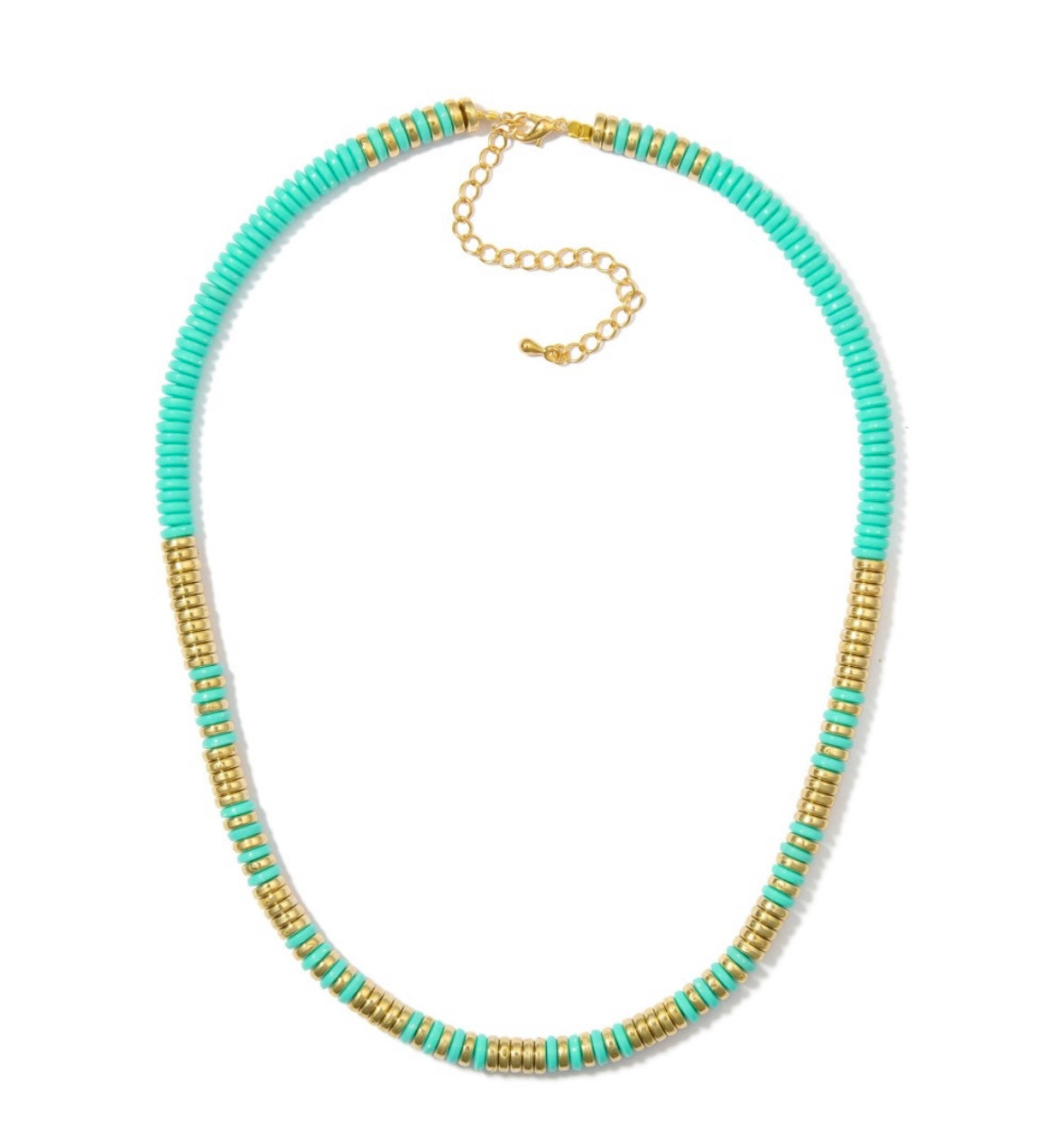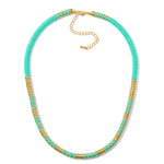 A modern classic with a coastal twist. The Golden Tide Necklace combines rich turquoise tones with warm gold accents for a look that feels both timeless and fresh. Adjustable, lightweight, and perfect for layering.