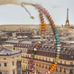 This gemstone necklace reminds me of Paris. The stones bring back memories of the paintings in the Louvre, Paris Markets full of antiques & curiosities, fresh fruit pastries in the bakery windows, fashion on the streets, and sipping on a Kir Royale (champagne & creme de cassis) and watching people stroll by on the cobblestone streets.