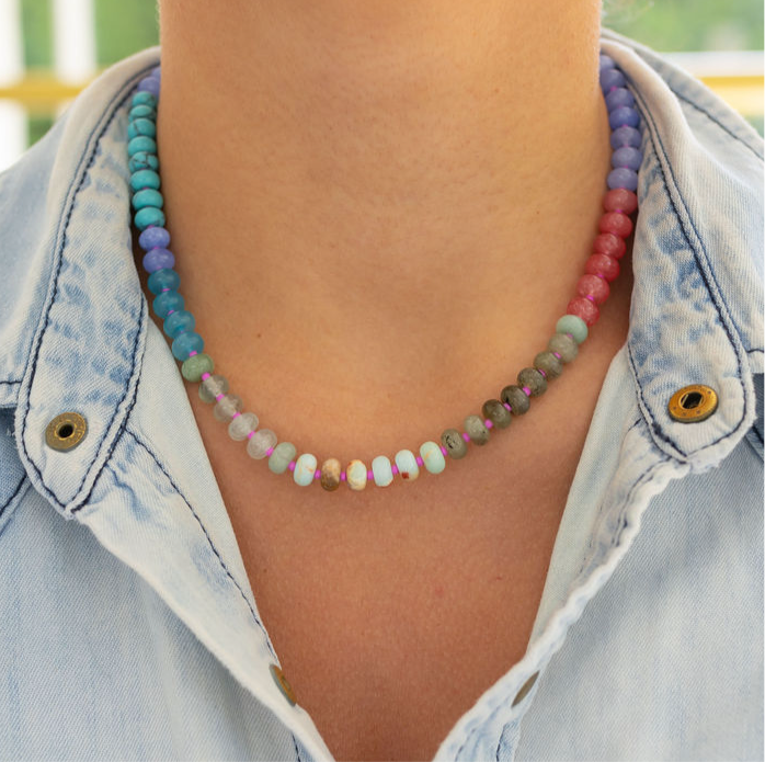 Rediscover your inner shine with our gemstone necklace collection. The perfect necklaces for standing out, adding a pop of color to your wardrobe. Moonstone, beach glass, or classic gemstone necklaces, whichever you choose, your creativity will shine through! Each necklace can be stacked beautifully with our gold statement necklaces, check out our necklace bundles for inspiration.