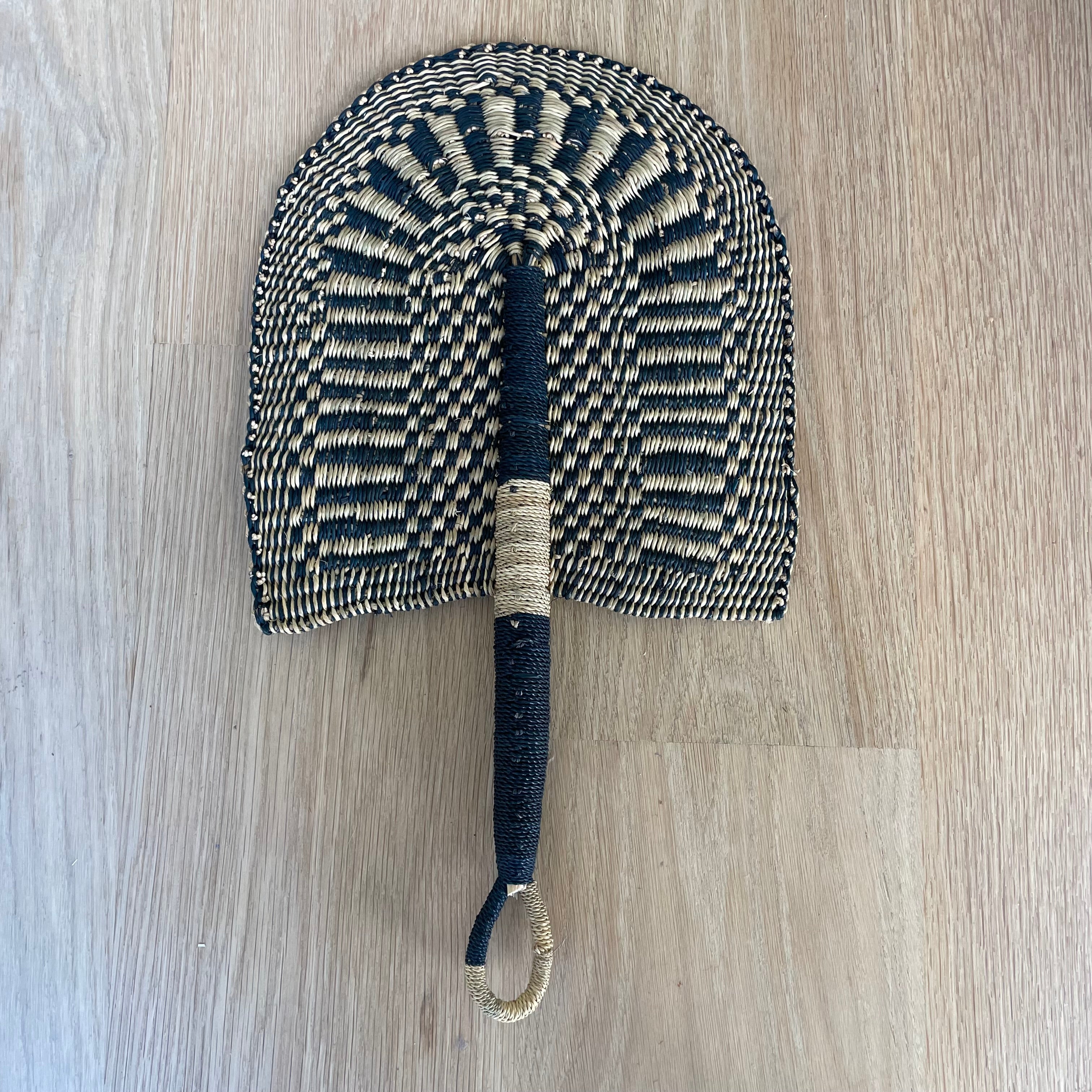 These fans are called Bolga Fans and are made in Bolgatanga, a small town in the northern region of Ghana. The fans are purely hand woven and made from straw called “Elephant Grass”. with the designs taking inspiration from the fans once made for Ghanaian royalty. Inspired by the regal fans once used by Ghanaian queens, these striking pieces unite West African heritage with modern design. Each fan undergoes a meticulous 8-step process that takes up to a day to complete.