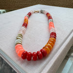 A soft blend of blush pinks, terracotta reds, and golden honey tones—this resin necklace feels like the warmth of late afternoons in Autumn. Each smooth bead catches the light just enough to give a subtle glow, and the gold clasp adds a polished finish. It’s easy to wear with everyday tees or layered with your favorite chains for a pop of color and texture. Lightweight, modern, and full of feel-good hues that go with everything.