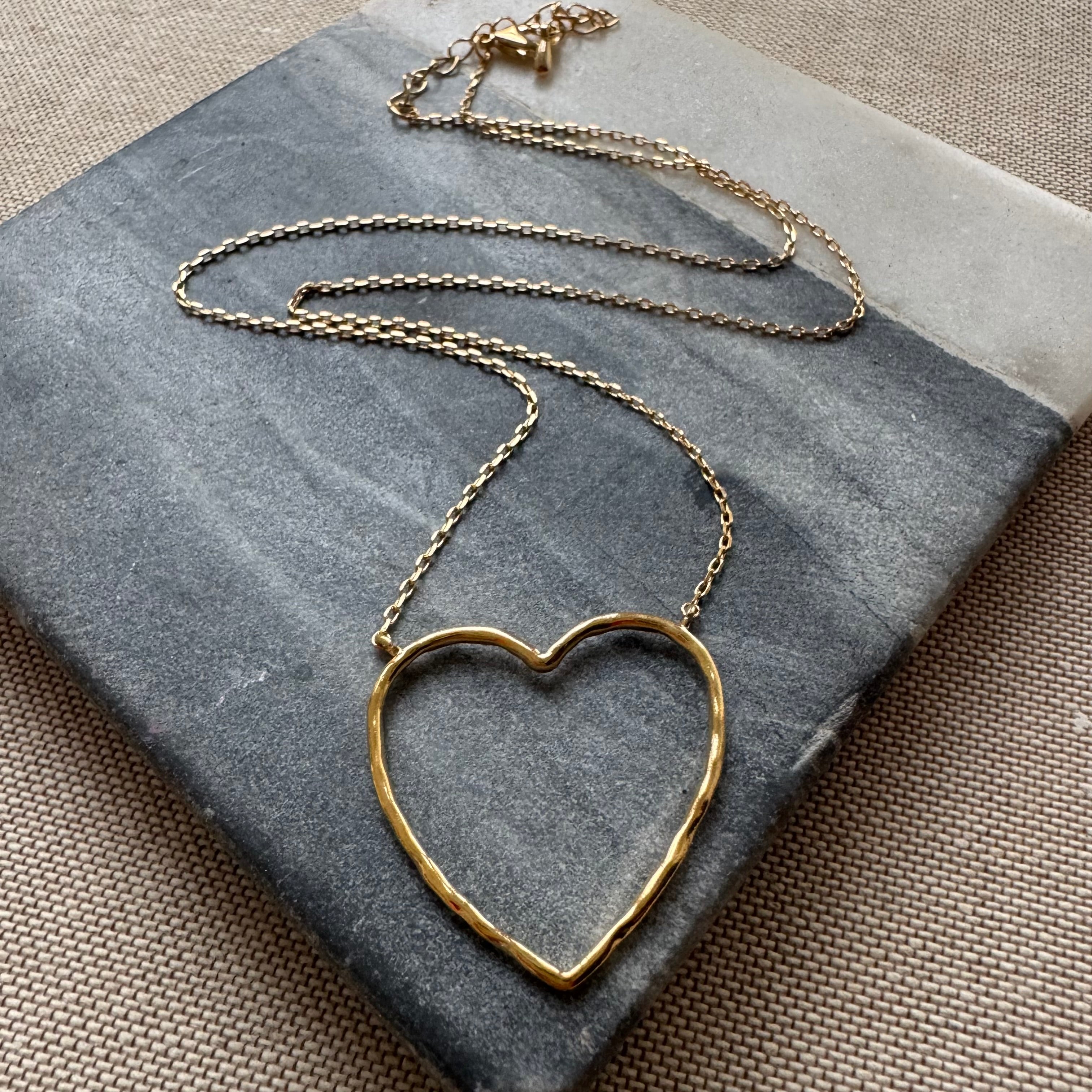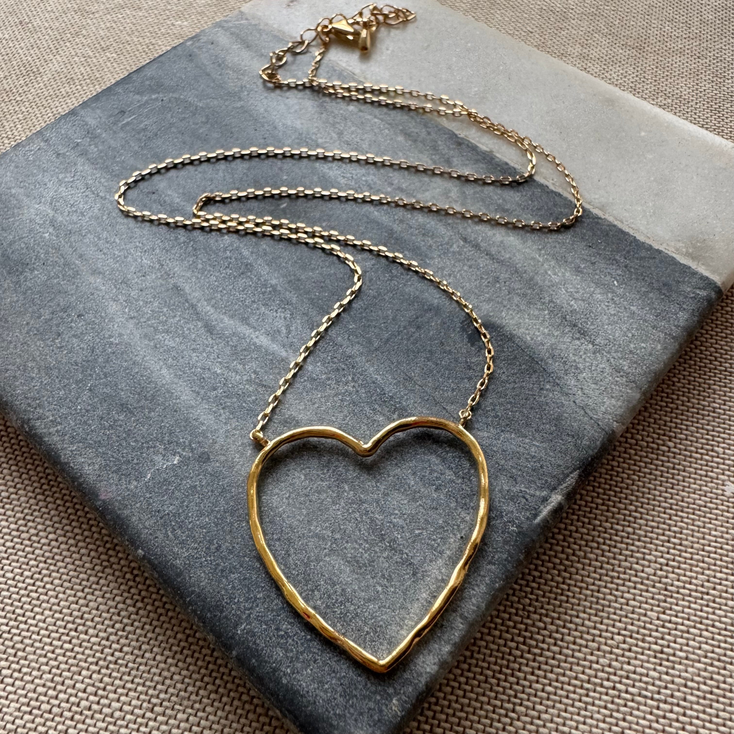 Our Open Heart Necklace is a reminder to move through life with love — open, brave, and kind. The softly hammered gold outline gives this classic symbol a modern, effortless feel. Lightweight and versatile, it’s beautiful on its own or layered with your favorite pieces.