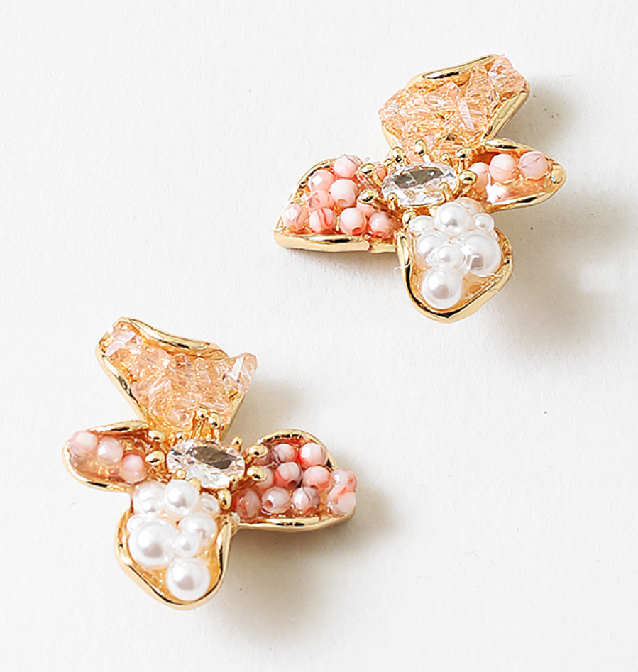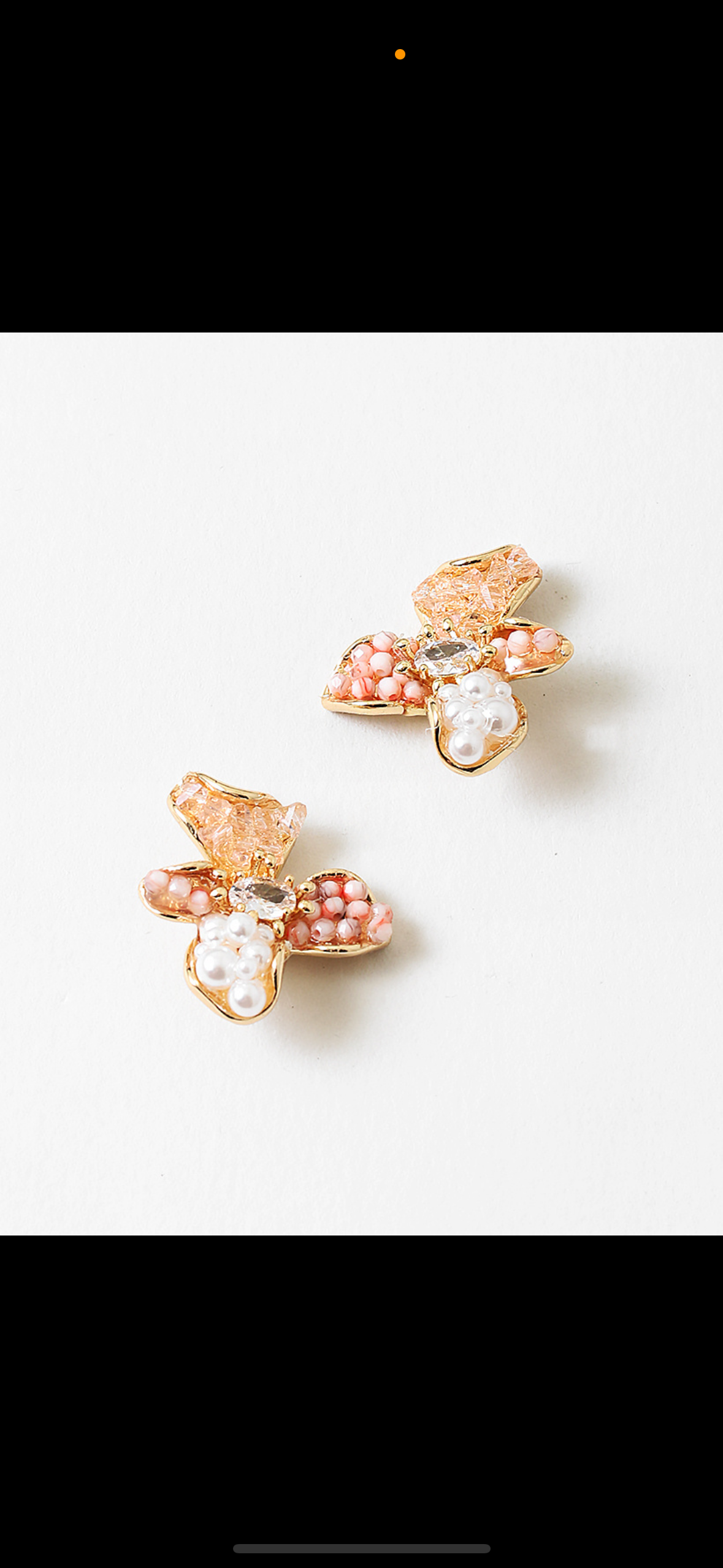 .75” length / these intricate beaded floral earrings and just so beautiful! We love the design, the detail, the size and the versatility these have! Our  “on trend” delicate and detailed stud for any jewelry love to pair the floral elegance with a fresh and modern spin.