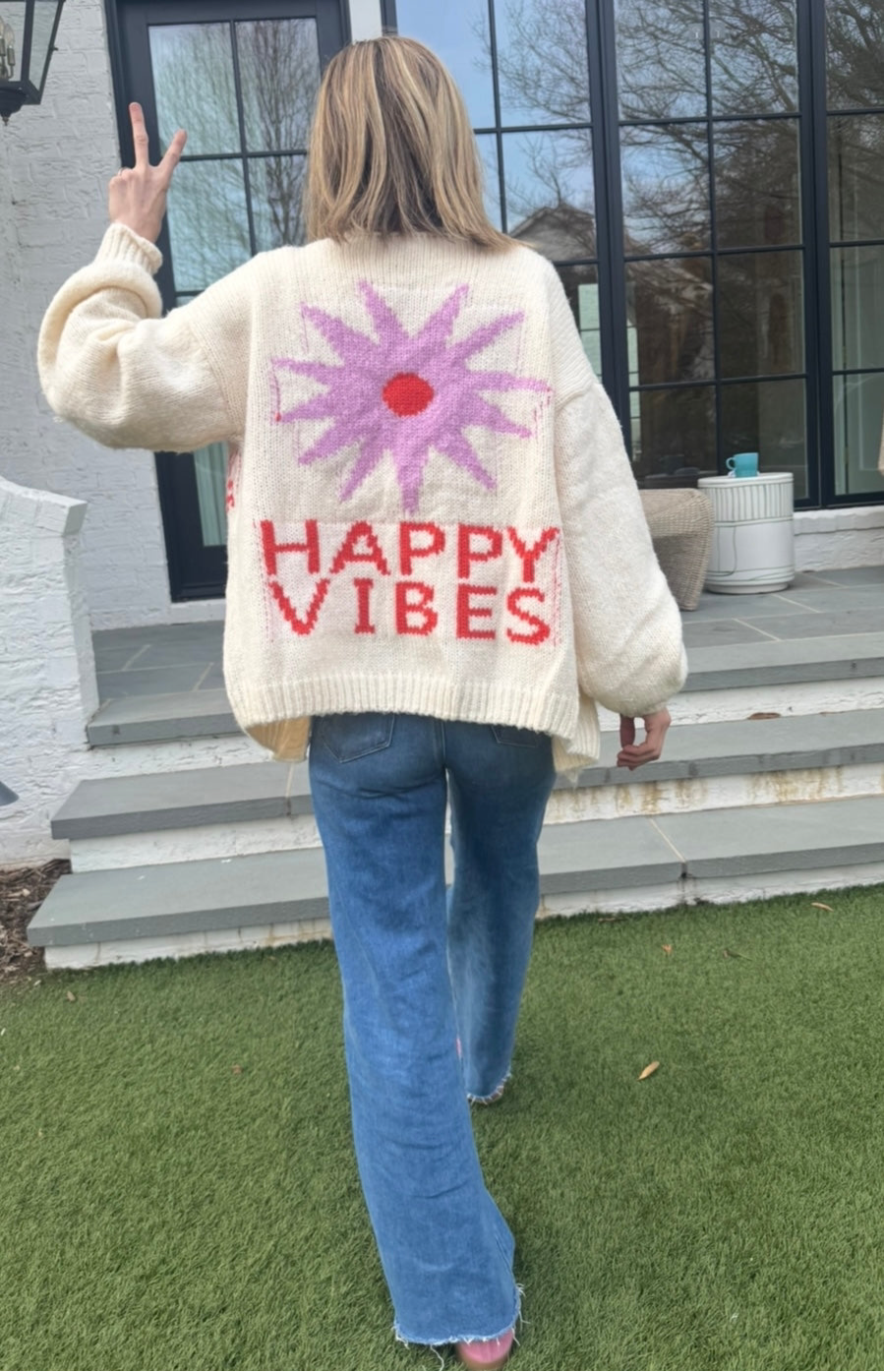 This long sleeve knitted “happy vibes” cardigan is perfect for the warmer temps. It feels like a lightweight cozy blanket and because it isn’t itchy at all, you can wear it over a tank top or tee. We love it worn with the buttons in the front or the back…each way looks so cute! Because of the oversized and effortless fit, you can easily go up or down in size.