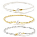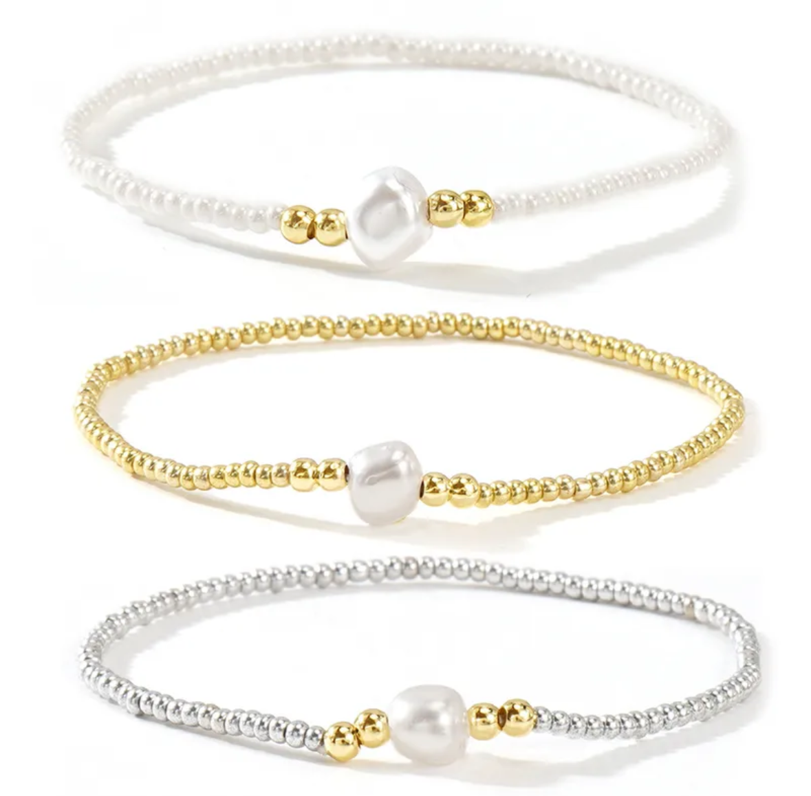Set of three stretch bracelets with iridescent colors and pearls