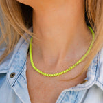 I love a pop of neon with any outfit! An unexpected twist to show your style confidence and fun but still keeping things easy-to-wear and within your comfort zone! We love this one layered with any other necklaces from our collection-you’ll be surprised how often you reach for this piece & how it pairs so beautifully with so much in your closet!