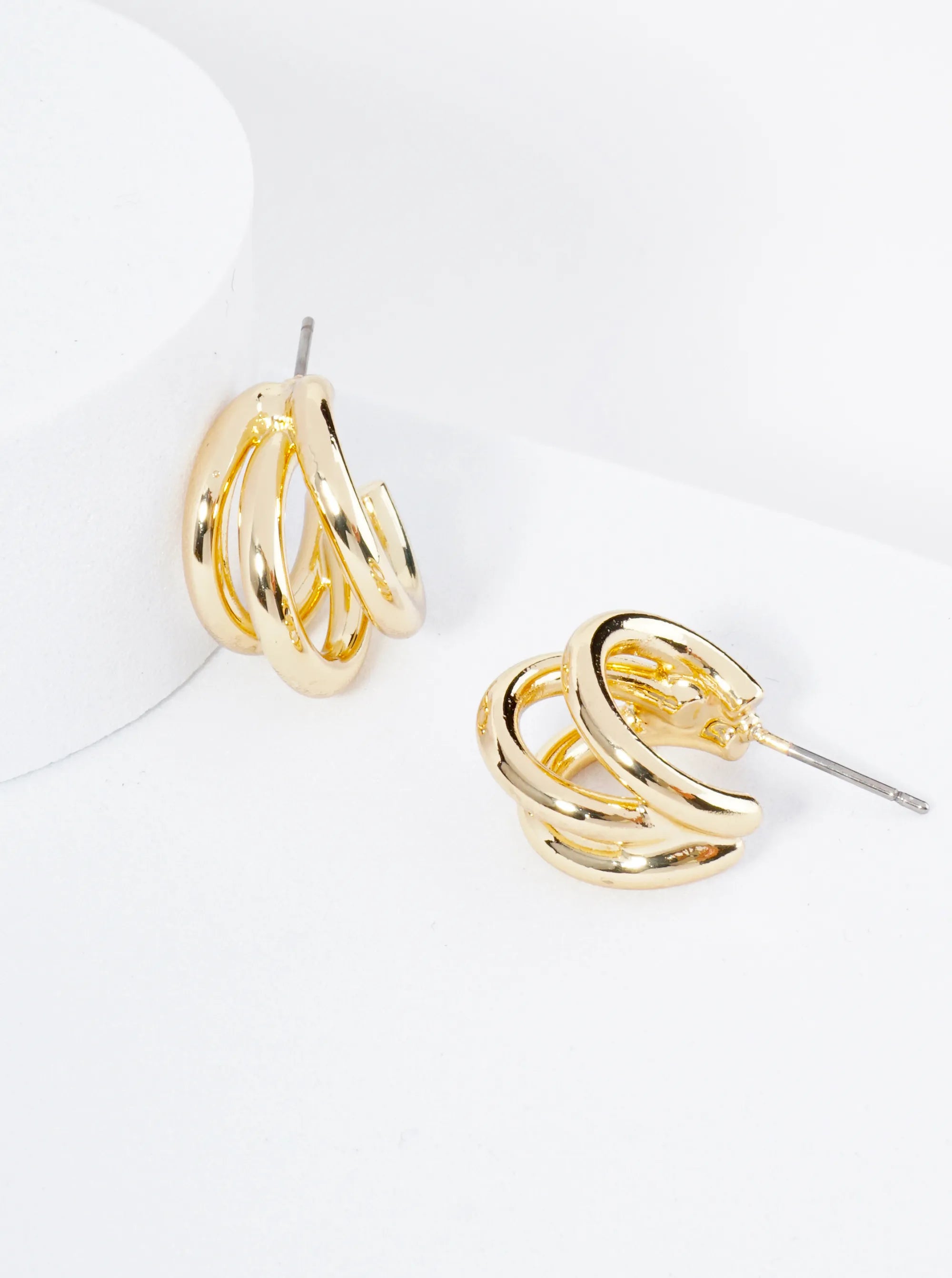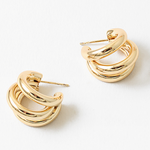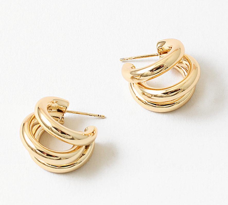 We love these tiny huggies. Three loops hang underneath one post to create the cutest ear huggie.