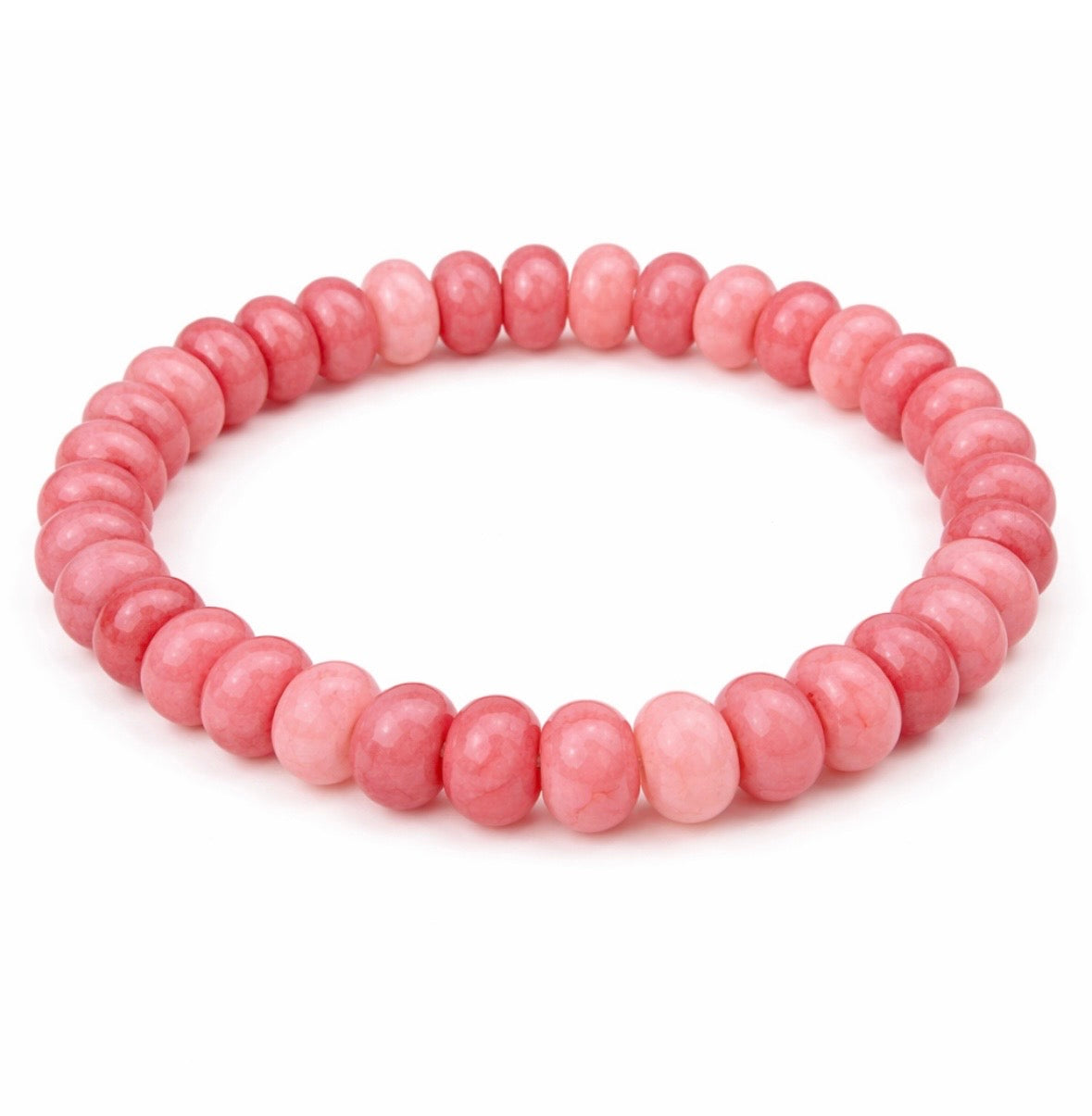 A vibrant coral gemstone bracelet crafted with smooth, faceted rondelle beads in warm shades of pink and soft orange. Each stone features natural variation and subtle texture, giving the bracelet depth and a sun-kissed glow. Strung on stretch for effortless, everyday wear, this bracelet adds warmth and brightness to any stack.