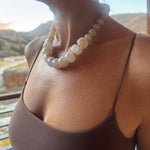 This necklace is stunning — it has such a serene, elevated feel. The chunky translucent ivory beads with soft shimmer and rounded edges give it a natural glow that feels both modern and timeless.