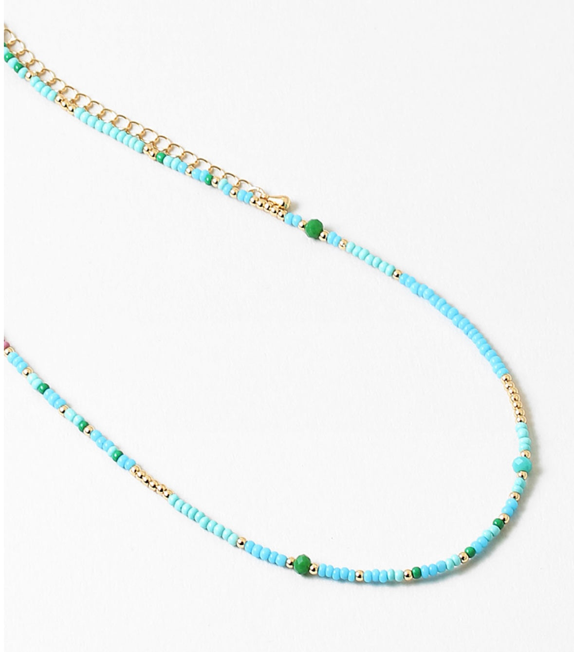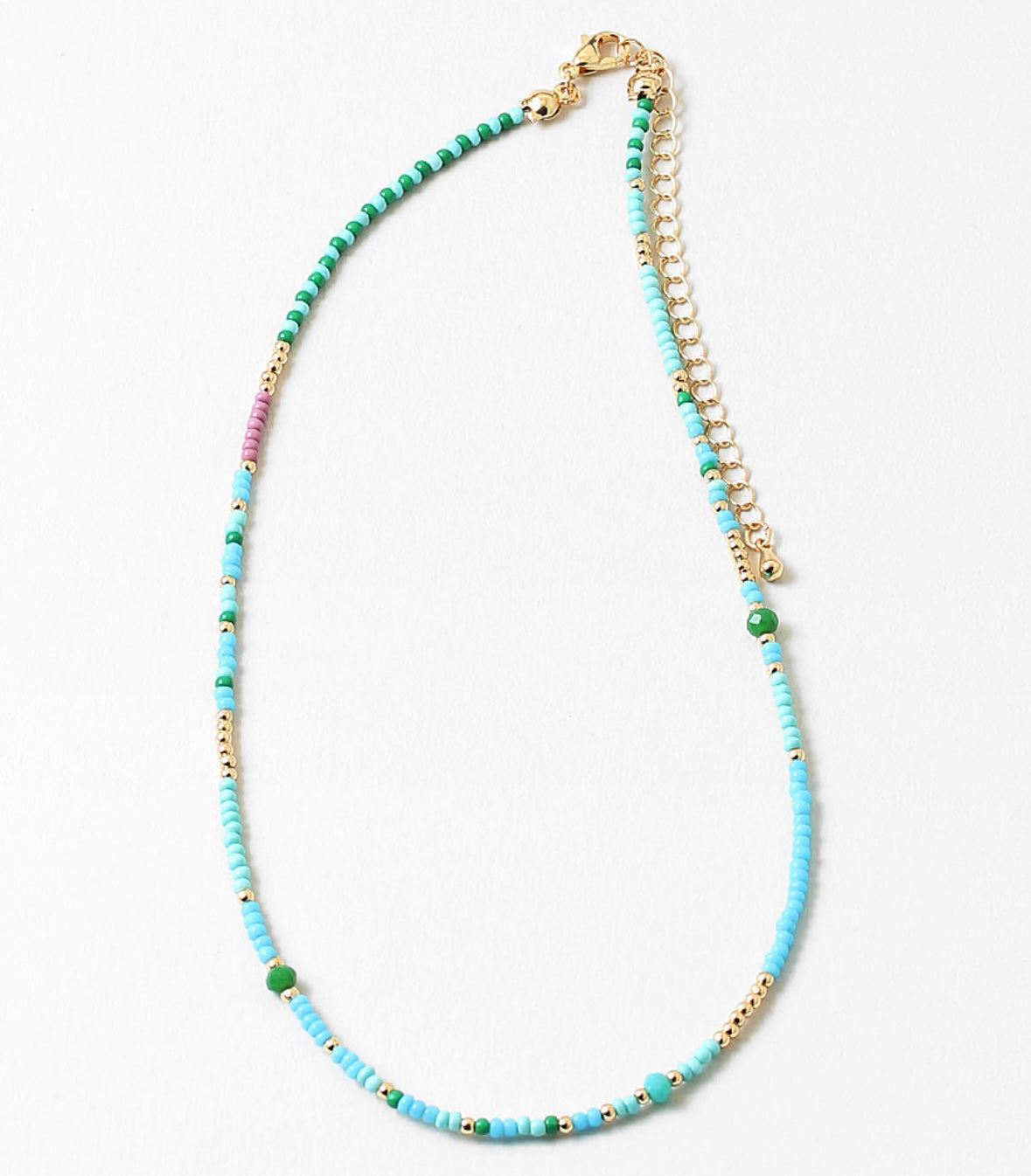 A soft mix of aqua, mint, and green beads with subtle gold accents, the Seabrook Necklace brings an effortless coastal feel to everyday looks. Lightweight and perfect for layering, it’s designed to add a pop of color without overpowering your outfit.