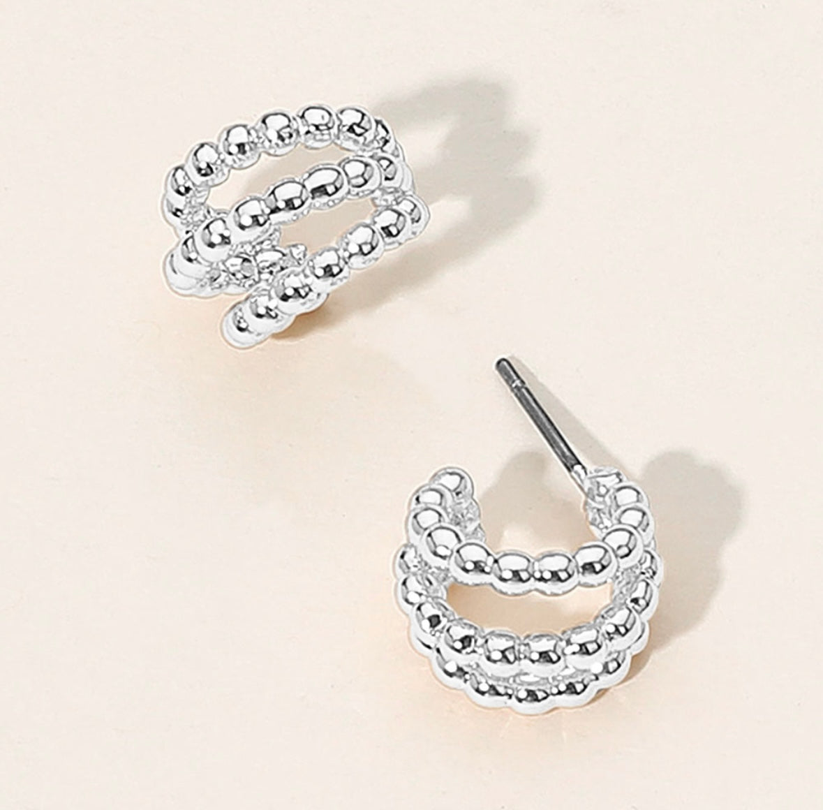 .25” tiny silver textured hoops