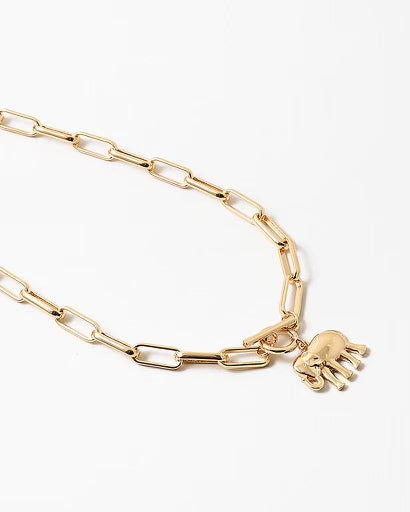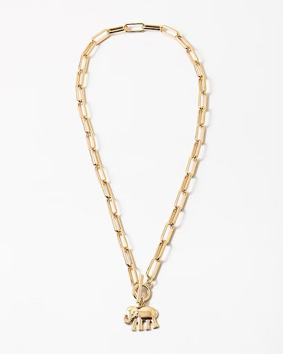 17” length! We’ve always loved elephants and have incorporated them in our jewelry year after year. Trunks up means good luck & we could all use a little luck these days…am I right? Keep with you and close to your heart for a sentimental conversation piece. Keep one for yourself and gift one to someone who could use a little magic in their life. Made with an elephant charm and a thick rectangle chain, this one fastens with a toggle in the front and is a staple!