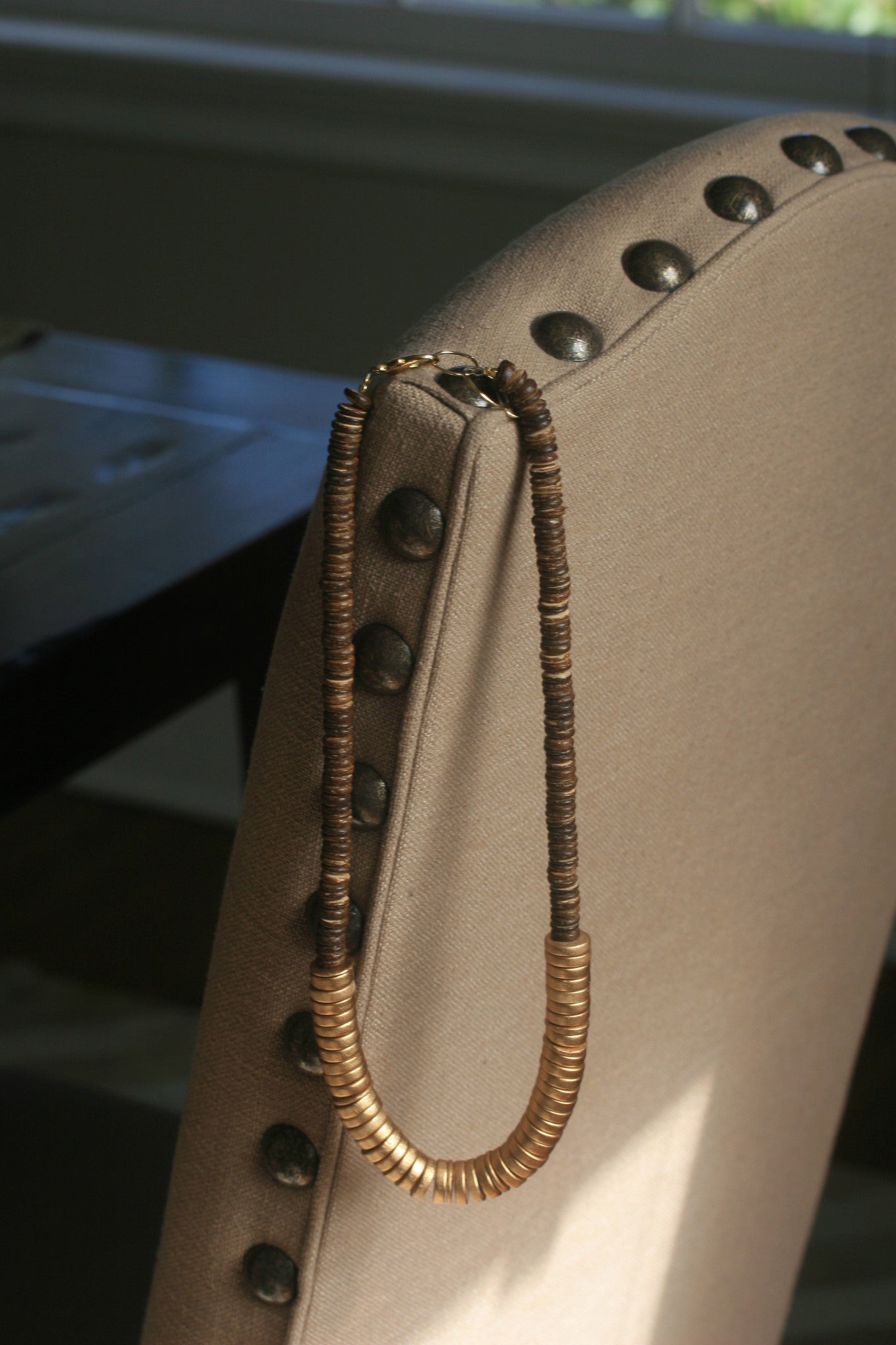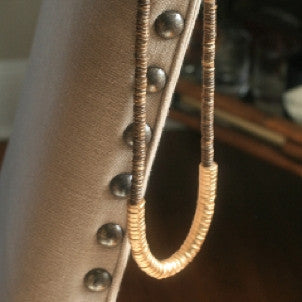 This is a perfect is stylish and chic, and combines raw coconut wood with gold discs. It's a little shorter than the boho-necklaces (we like to call it a boho-shorty), so it's perfect for layering with longer necklaces and tassel necklaces. It also looks great with shorter delicate necklace and stand alone beautifully.