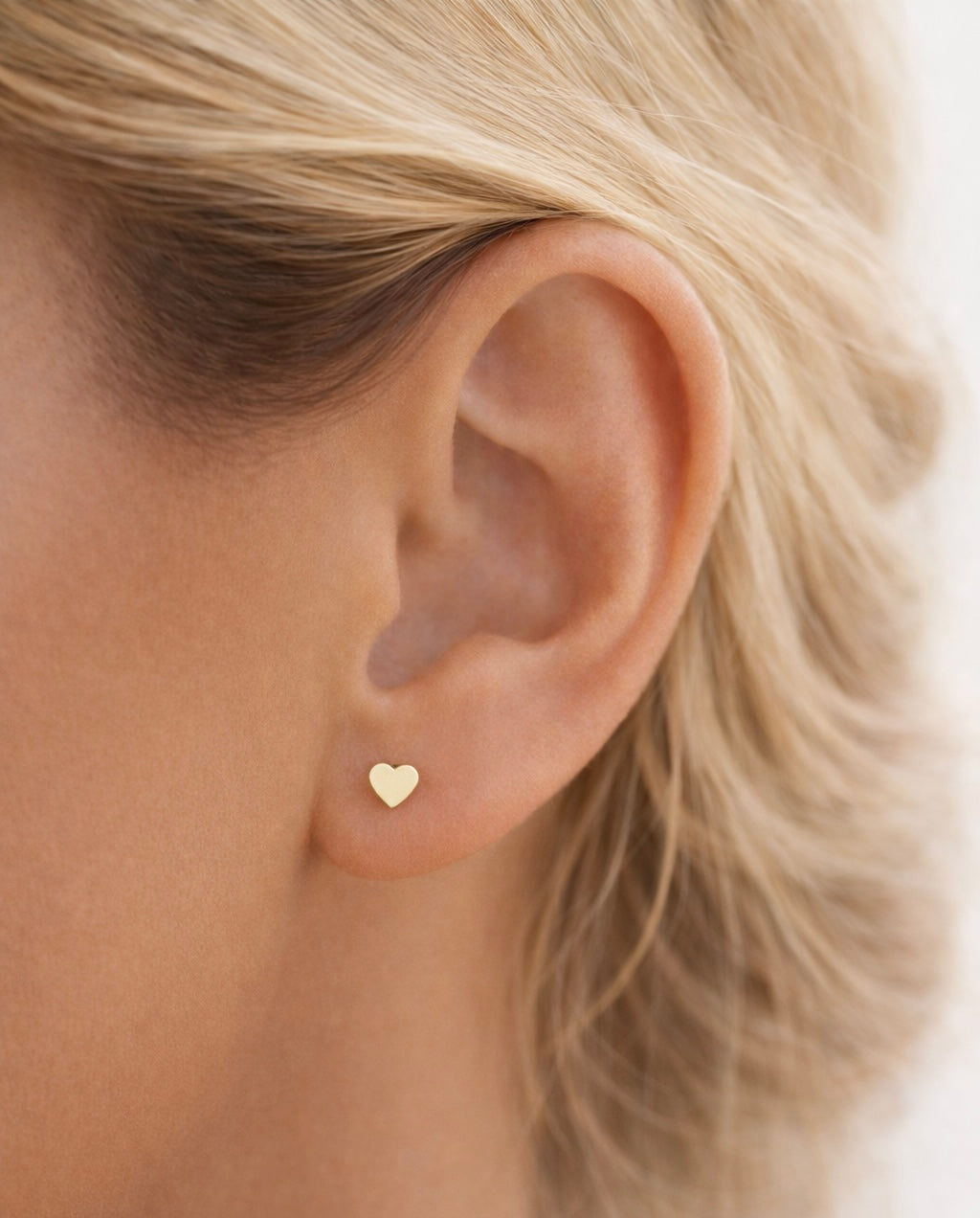 Our Tiny Gold Heart Studs are the definition of effortless. Minimal yet meaningful, these sweet little hearts are perfect for everyday wear and make the most thoughtful gift. Lightweight and timeless, they’re easy to style, easy to love, and designed to be worn on repeat.